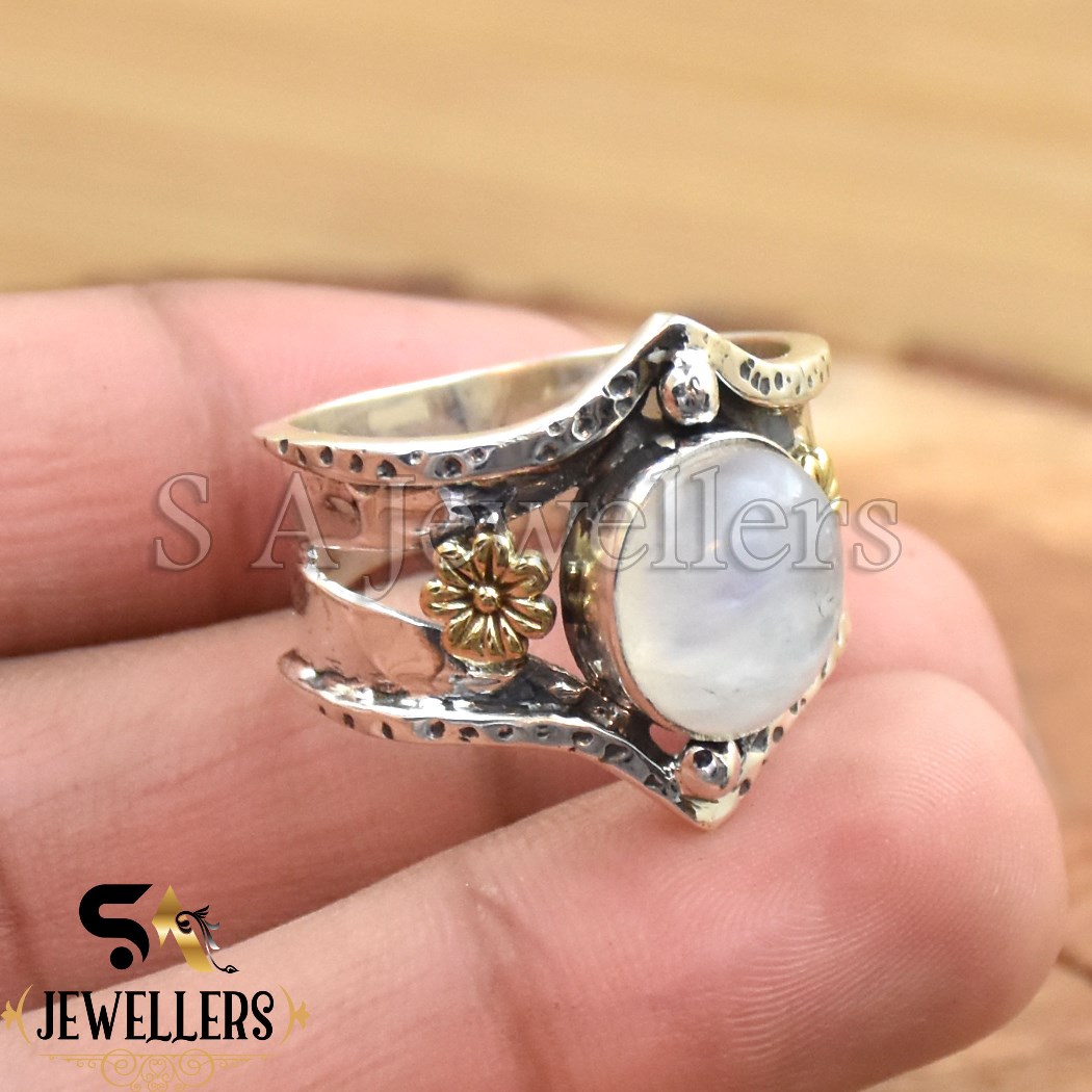 Rainbow Moonstone Ring, 925 Sterling Silver Ring, June Birthstone