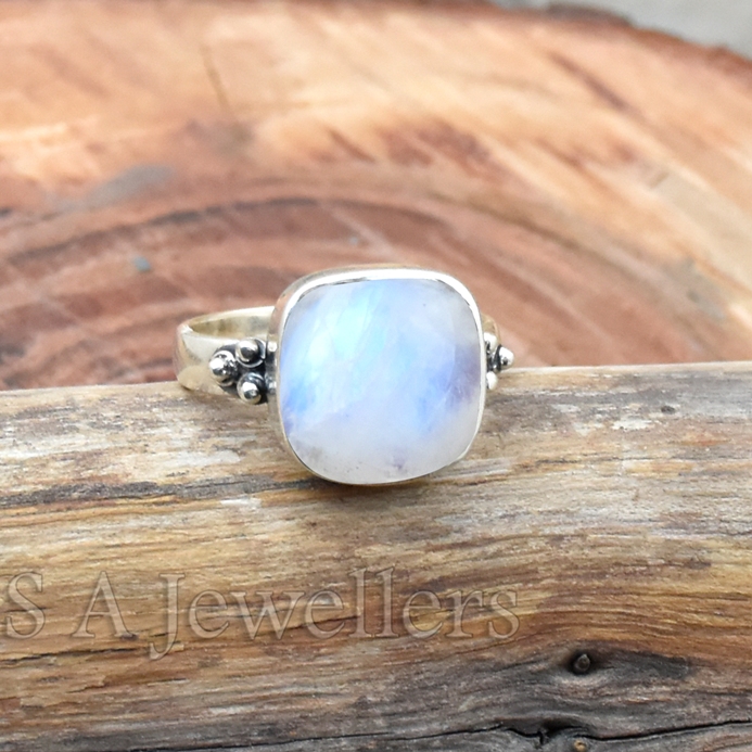 Rainbow Moonstone Ring, 925 Sterling Silver Ring, Women’s Ring
