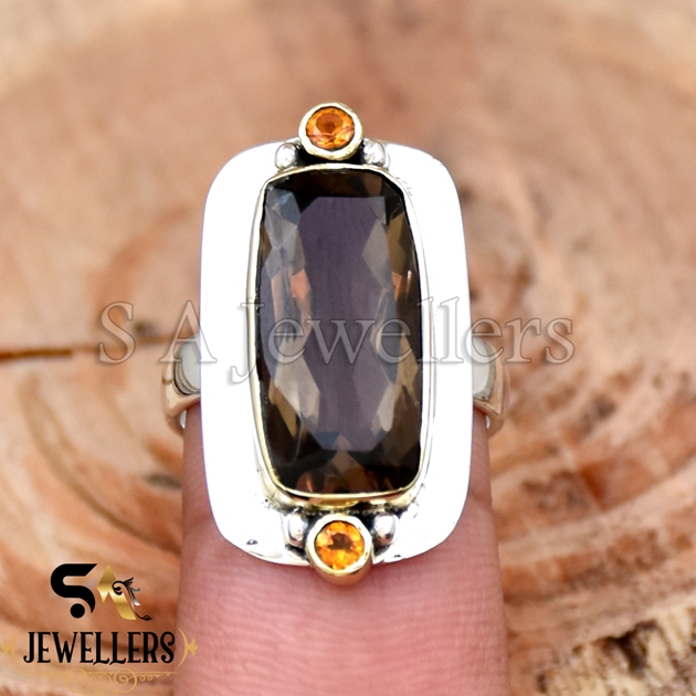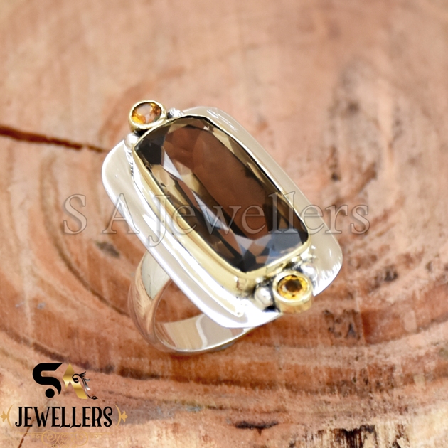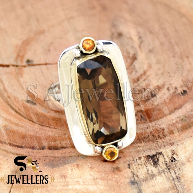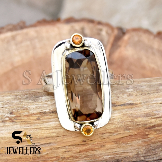 Be the first to review “Smokey Quartz & Citrine Ring, Modern Design Ring, 925 Sterling Silver, Two Tone Ring,”