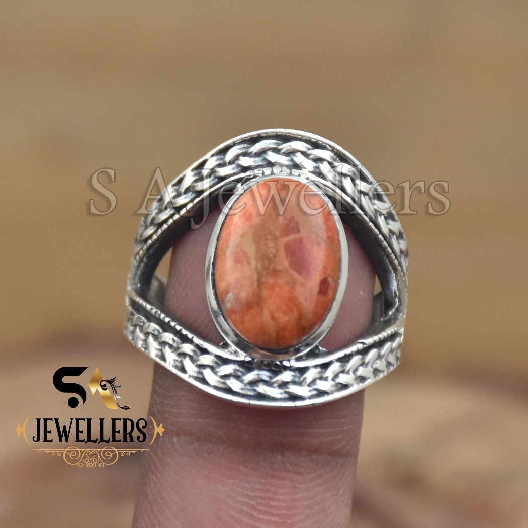 Sponge Coral Oval Ring, Statement Ring, 925 Sterling Silver Ring