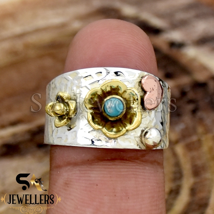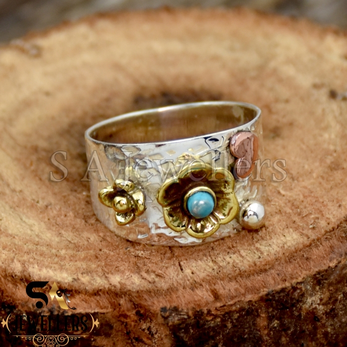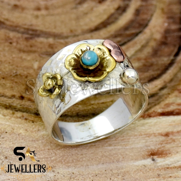 Turquoise Silver Ring, 925 Sterling Silver Ring, Flower Ring, Gift For Her
