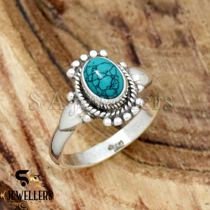 Turquoise Silver Ring, 925 Sterling Silver, Statement Ring, Pinky Ring