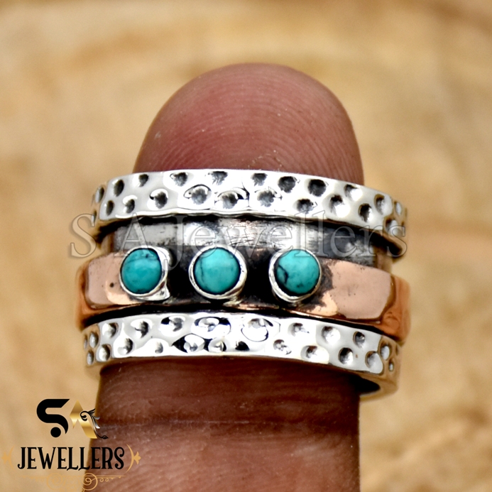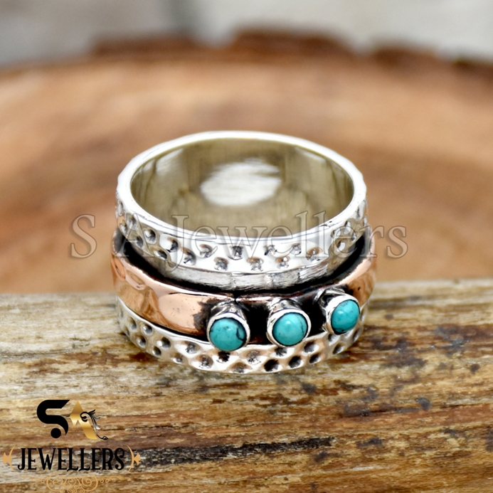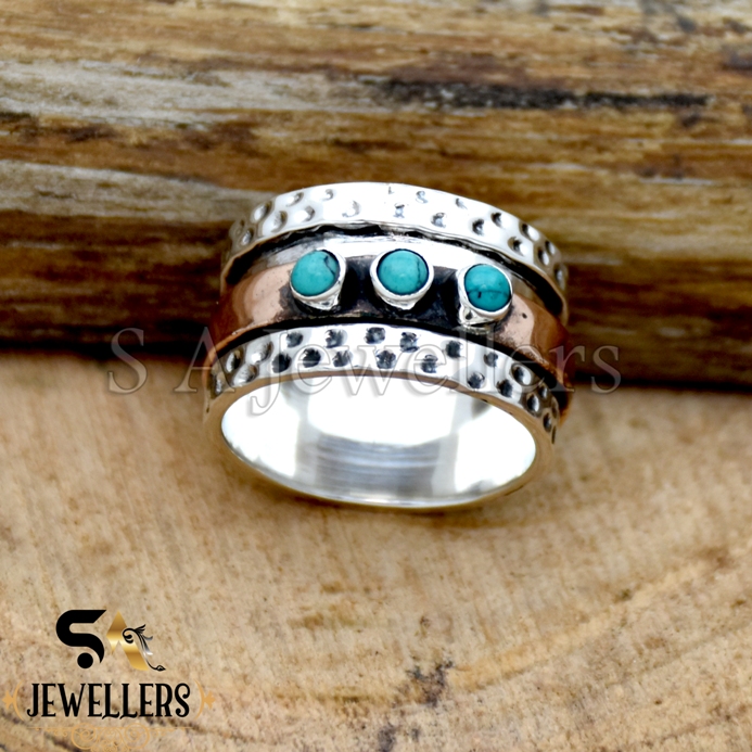 Be the first to review “Turquoise Spinner Ring, 925 Sterling Silver Ring, Two Tone Ring, Wide Band Ring”