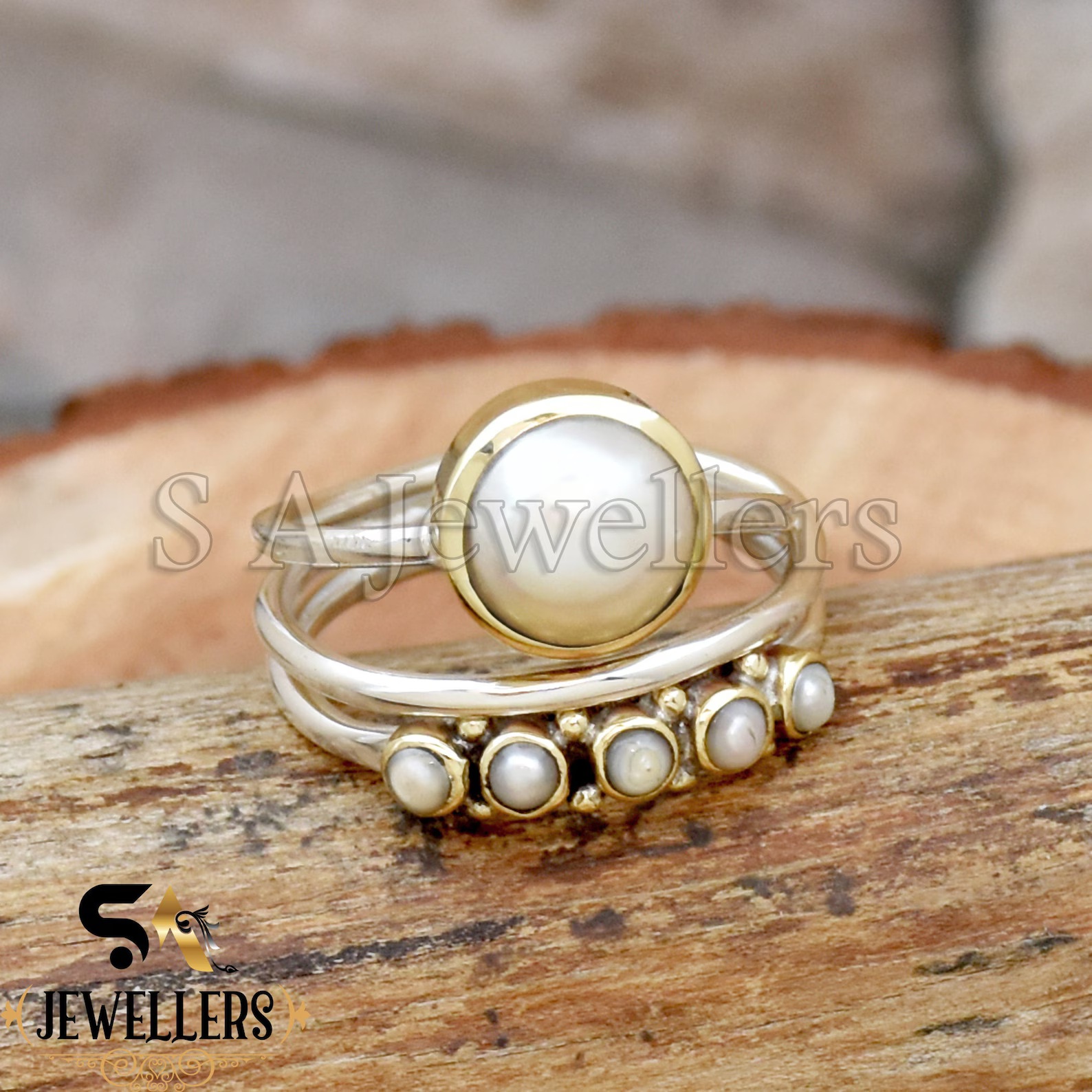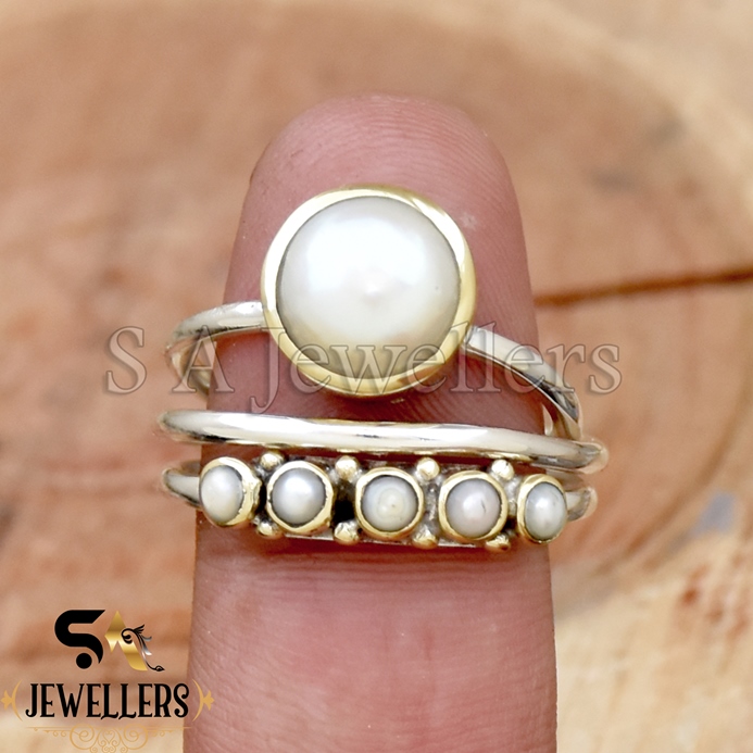 Be the first to review “White Pearl Ring, 925 Sterling Silver Ring, Tow Tone Ring, Handmade Ring”