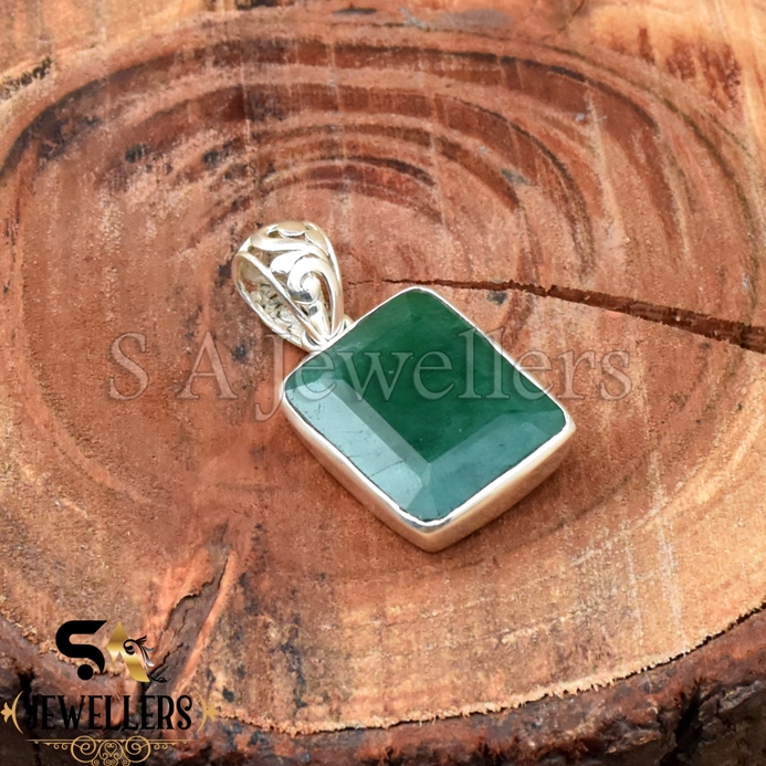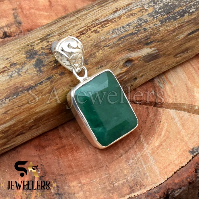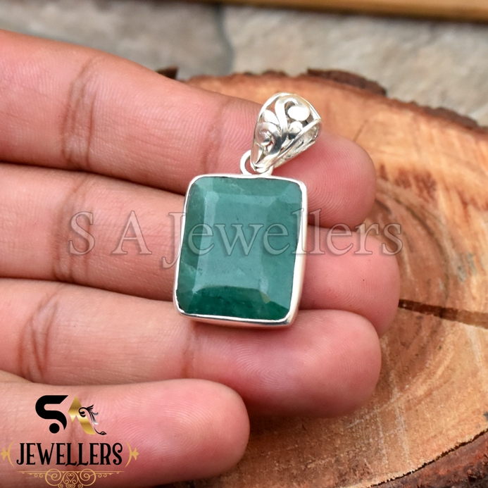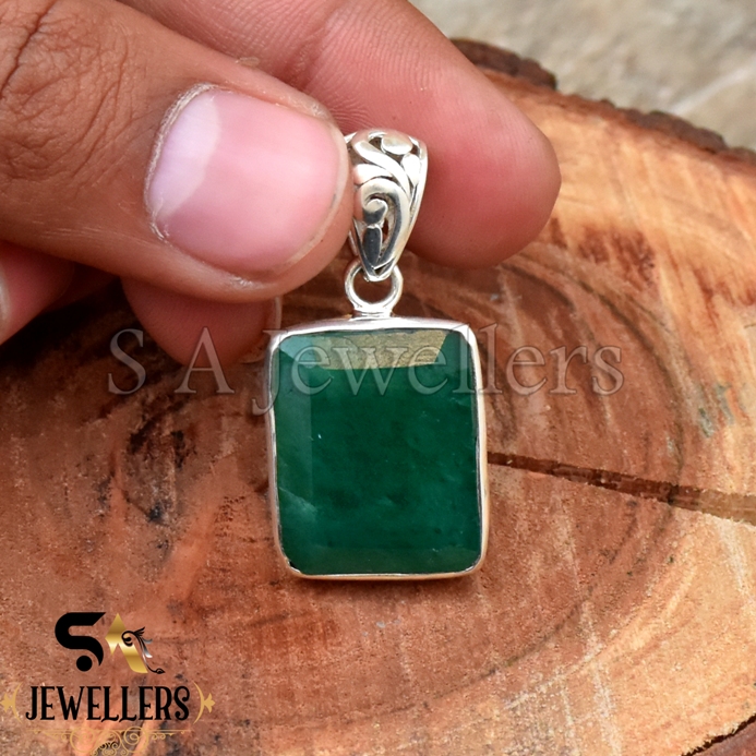 Indian Emerald Pendant, 925 Sterling Silver Ring, Bezel Pendant