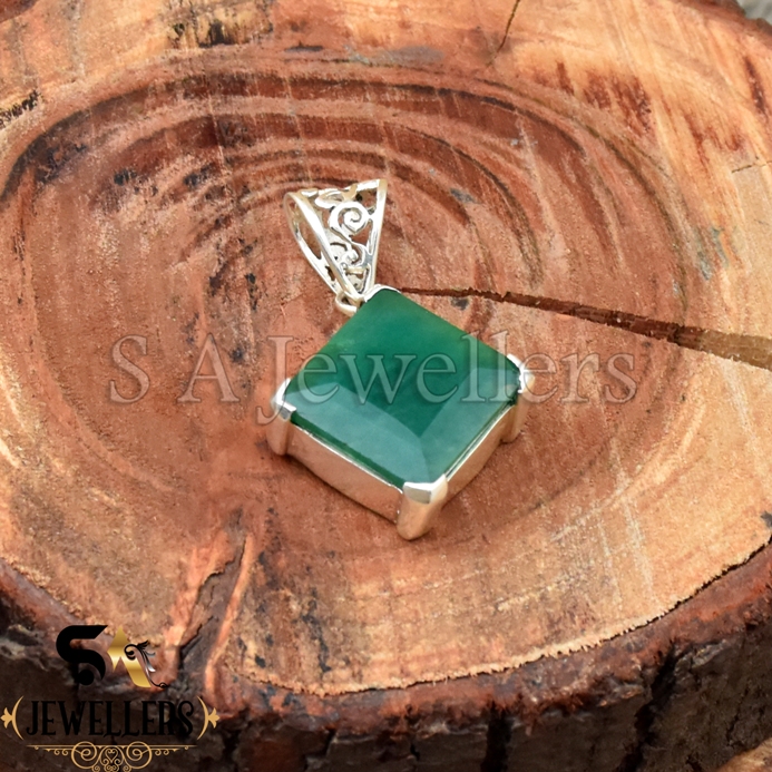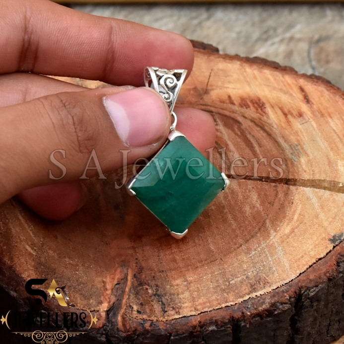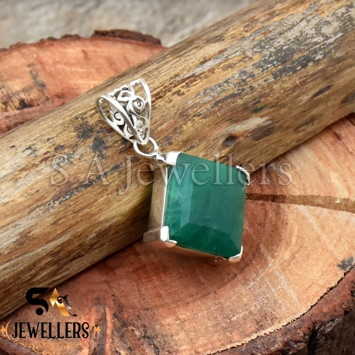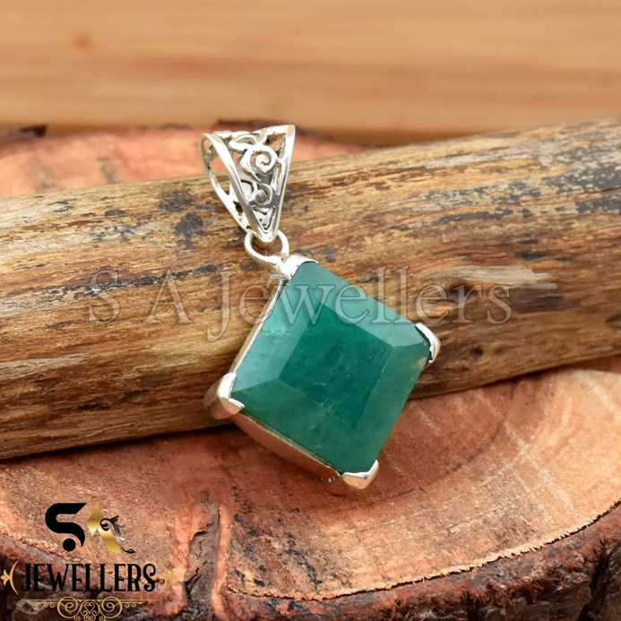 Indian Emerald Pendant, 925 Sterling Silver Ring, Prong Pendant, Gift For Her